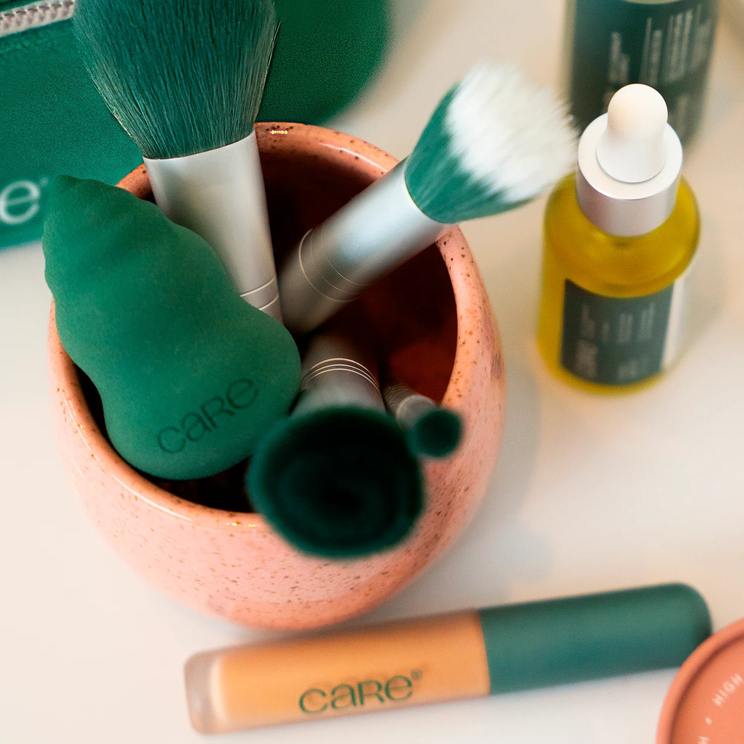 Os pincéis possuem cerdas sintéticas e macias na cor verde, 100% limpas e veganas para oferecer leveza no manuseio e alta absorção dos produtos. São higiênicos e fáceis de limpar para evitar alergias e a proliferação de mofos, bactérias e fungos. Desenvolvidos para todos os tipos de maquiagens, os quatro pincéis contam com elegantes cabos de metal prata fosco para embelezar ainda mais seu ritual de autocuidado.